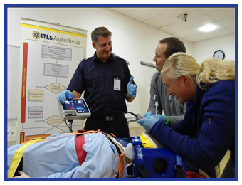 Den Anfang machte die RETTUNGSDIENSTAKADEMIE der RKiSH in Heide. 14 Teilnehmer, davon 2 Ärzte des dortigen Westküstenklinikums Heide trainierten ihre traumatologischen Fähigkeiten in dem 2 tägigen Kurs vom 03.04. – 04.04.2012. Im gesamten Einzugsgebiet der RKiSH sind seit Anfang 2009 die präklinischen Versorgungsstandards von ITLS für Traumapatienten eingeführt worden, so dass hier eine einheitliche Patientenversorgung durchgeführt wird und sich eine nahtlose Anbindung an die nach ATLS organisierten Schockräume realisieren lässt